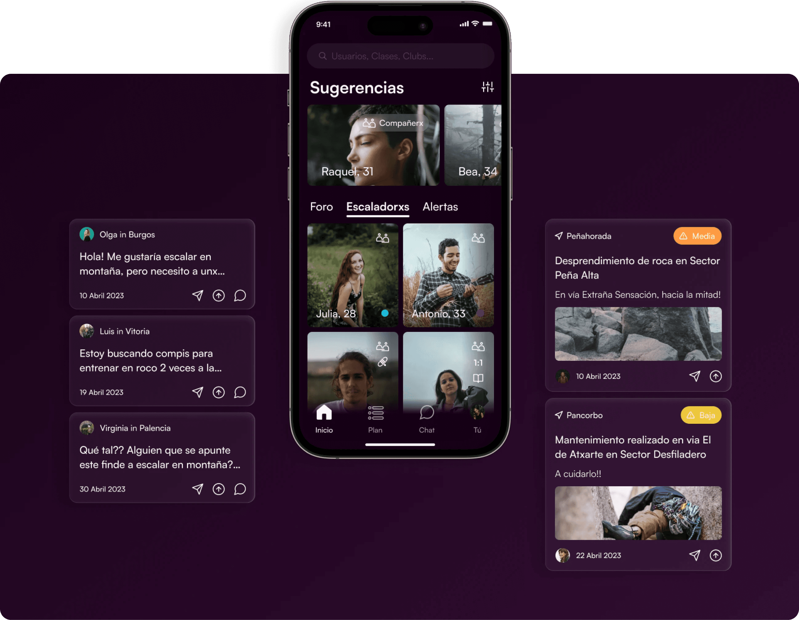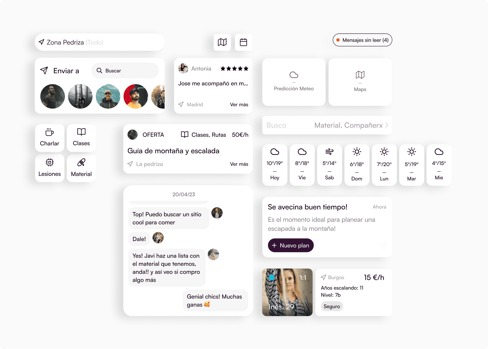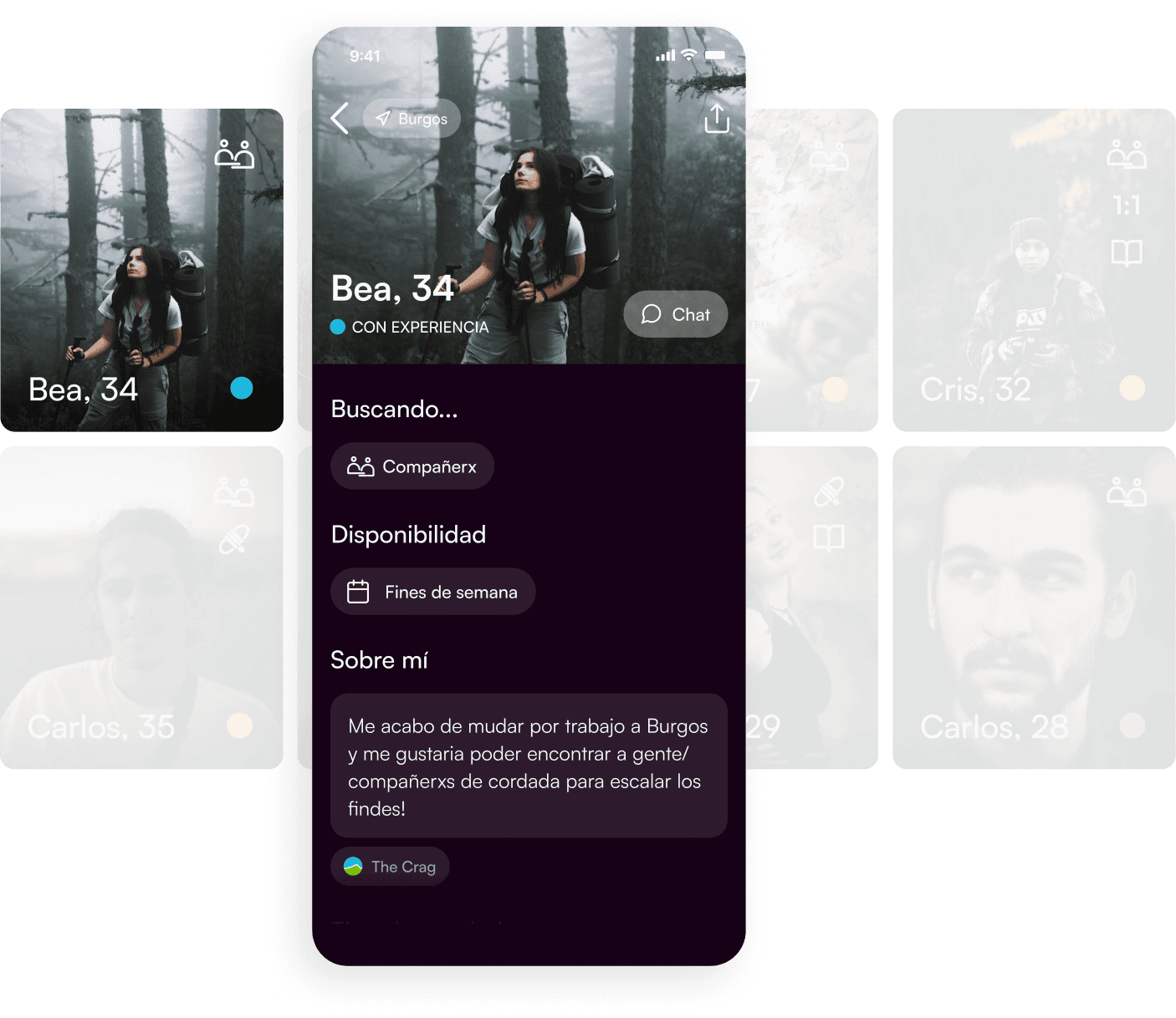 CTA-enriched notifications are displayed on Chat. On top of open chats, there’s a quick chat access to climbers near you sorted by latest connection.