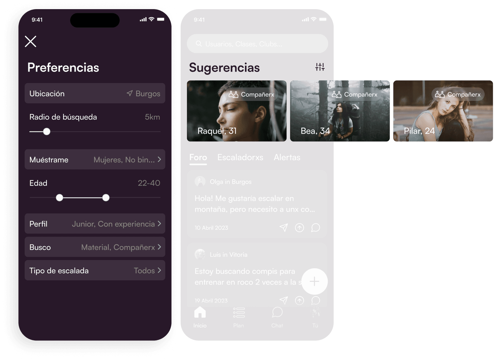The term ‘useful’ has a different meaning depending on which goal the user is trying to achieve. To make Ropes as ‘universally’ useful as possible, customisation is at its core. “Recommendations” is the homepage’s highlight section. It’s a shortcut to whatever is the user’s need(s). Its preferences include basic filtering options (location, distance radius, gender, age) and more specific fields like needs to-be-fulfilled, experience level or climbing style.