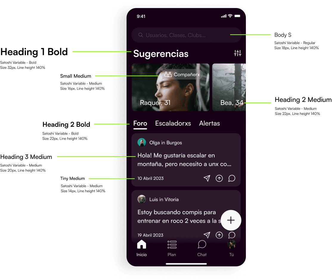 The app was ideated to evoke familiarity by referencing commonly used apps in elements such as the Feed, Chat section, Weather forecast or the Add button. Given its network nature, the IA focused on a simple navigation built around Ropes’ offering. There’s two main sections, Home and Plan.